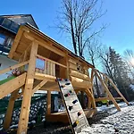 The Zakopane Exotic Parrot House is approximately 25 minutes' walk from Apartamenty Na Pocontku Zakopane, while Willa Czerwony Dwor is situated nearby. The apartment offers a view of the mountain, and there is a terrace.